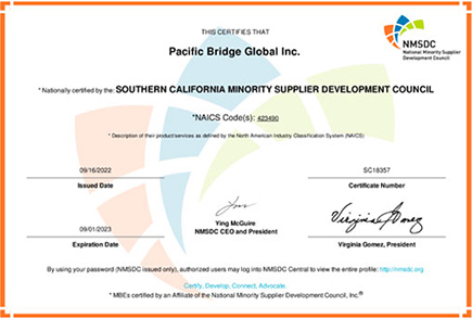 Welcome to Pacific Bridge Inc., a certified Minority-Owned promotional products enterprise with over 20 years of experience in delivering promotional items and services.
